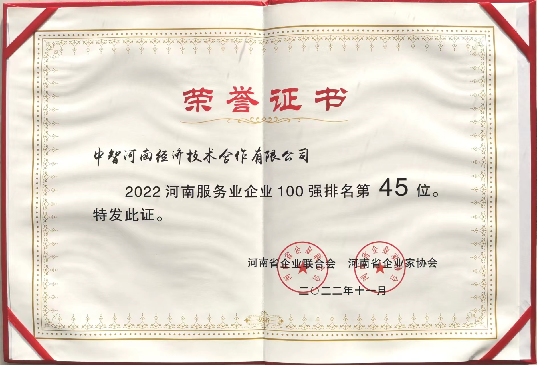 1.中智河南公司連續(xù)三年榮獲“河南省服務(wù)業(yè)企業(yè)100強(qiáng)”稱號(hào)