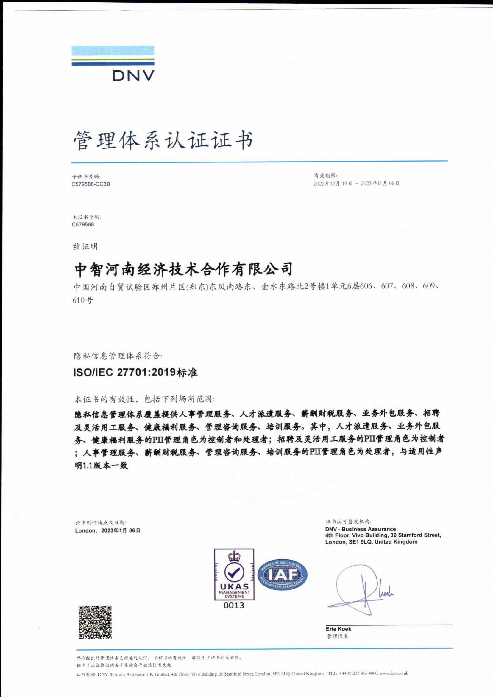 6.中智河南公司榮獲“各項(xiàng)管理體系認(rèn)證證書”