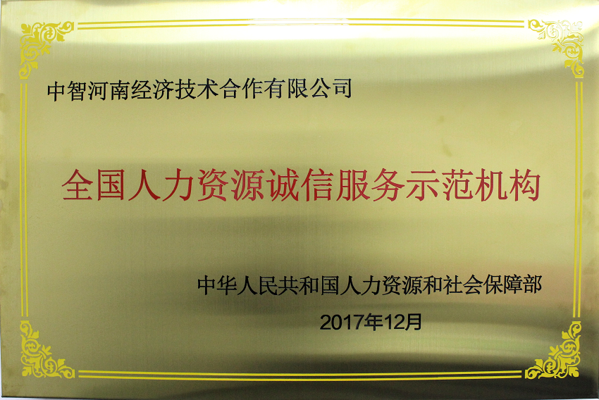 3.中智河南公司榮獲“全國人力資源誠信服務(wù)示范機構(gòu)”稱號